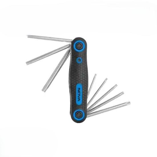 آلن چاقویی صنعتی ستاره ای نوا 8 عددی مدل 1240 یک ابزار حرفه‌ای و ضروری برای استفاده در صنایع مختلف است. این ست شامل 8 سایز مختلف از جمله T9، T10، T15، T20، T25، T27، T30 و T40 بوده و به دلیل طراحی خاص خود، می‌تواند نیازهای مختلف تعمیراتی و صنعتی را به‌خوبی برطرف کند. از جمله ویژگی‌های بارز این ابزار می‌توان به جنس آلیاژ فولادی Cr-V سخت کاری شده و حرارت دیده اشاره کرد که به این ابزار دوام و استحکام فوق‌العاده‌ای بخشیده است.